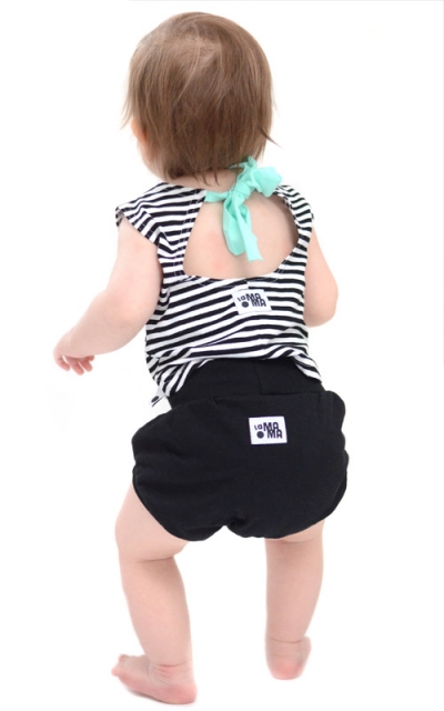 Inzwischen habe ich mich auch im Onlineshop von Lamama umgesehen und ärgere mich schon, dass ich den Wolkenpulli und die Bloomers nicht auch gleich bei der BabyExpo mitgenommen habe. Bloomers finde ich an Alma mit ihren knapp 2 Jahren gerade total entzückend. Jetzt im Sommer zu ihren Speckbeinchen und dann im Herbst wieder mit Strumpfhosen. Der Jersey schneidet keineswegs ein und macht jeden Kletterversuch von Kleinkindern mit.