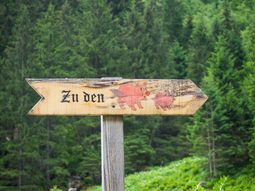 Am Weg zur Almhütte kommt man an einem wunderbaren Gebirgsbach vorbei, der fast schon von selbst „Bau-doch-einen-Staudamm!“ ruft. Wir haben dort einige Stunden verbracht und der Große hätte dort am liebsten sein Zelt aufgeschlagen. Herrlich.