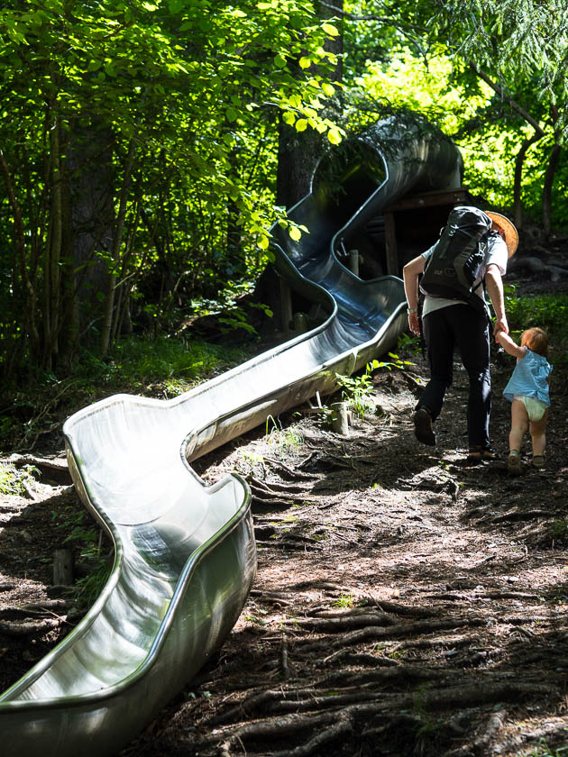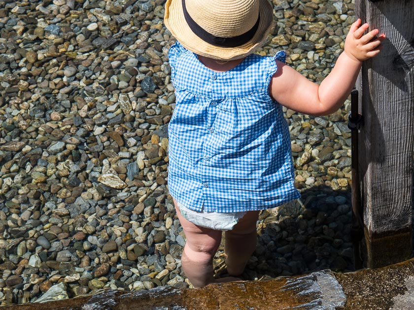 Der Erlebnisspielplatz und der halbgefüllte Speichersee war aber trotzdem toll. Da hatte ich mich auch von meinem kleinen Unfall in der Seilbahn erholt. Mit Sonnenhut irgendwie die Eingangshöhe der Gondel falsch eingeschätzt und mit der Mini am Arm einmal fast eine Gehirnerschütterung zugezogen – „I was not amused!“.