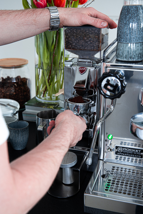 Wir haben uns nach einer ausgiebigen Beratung für eine italienische Rocket Appartamento Espresso Milano Maschine mit Zweikreis-System entschieden. Ein äußerst kompaktes Modell, das als Kombinationsangebot alles enthält, was man zum Espresso/ Cappuccino machen mit Siebträger braucht –