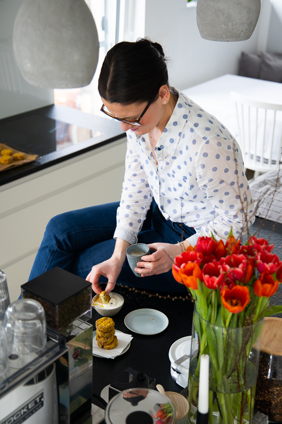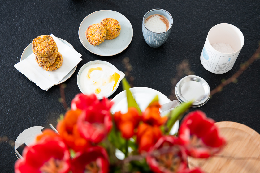 Zum Kaffee schmeckt nicht nur Süßes – wie schokoladige Tarte etwa, der Blechkuchen, die Erdnuss-Schoko Cookies oder die Espresso Brownies – sondern ich mag gerade Herzhaftes super gerne zum Kaffee. Daher findest du weiter unten ein genussvolles Rezept für Räucherfisch-Kartoffelpüree Taler – so eine Kombination aus gesunden Fischstäbchen mit inkludiertem Kartoffelpüree. Unglaublich köstlich, nicht nur zum Kaffee übrigens.
