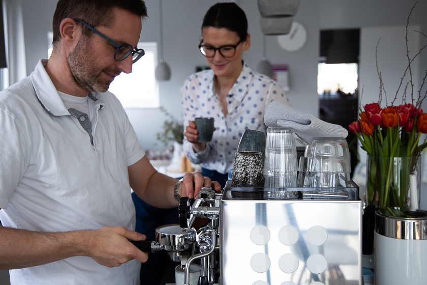 Kaffee aus der Siebträgermaschine ist nichts für Eilige, aber definitiv für Genießer. Als unsere Kapselmaschine vor ein paar Jahren kaputt ging, war schnell klar, eine richtig gute Kaffeemaschine muss her. Zufällig waren der Mann und ich damals zu zweit auf einer Veranstaltung, unweit von einem Espressomaschinen Fachgeschäft. Beim Betreten des Ladens war es aufgrund des Geruchs schon um uns beide geschehen und als wir den Probe-Espresso verkosteten, führte kein Weg mehr an einem Kauf vorbei – Liebe auf den ersten Schluck!