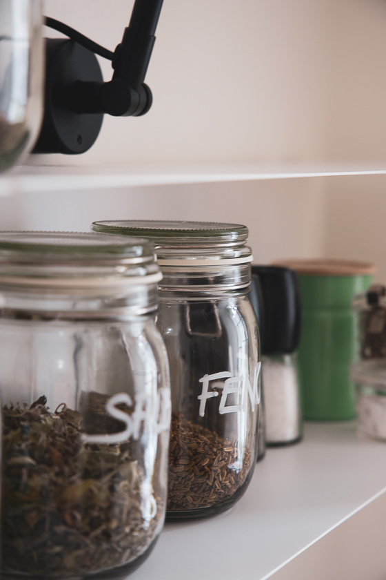 Die More is Now SPEISEKAMMER Regale sind gut gefüllt mit Tellern aus Keramik, scharfen Messern & feinen Gewürzen. Es kann losgehen!