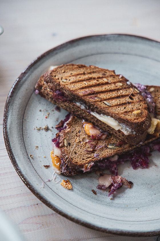 - 2 Scheiben Käse und eine große Gabelladung Kimchi zwischen zwei Brotscheiben stapeln und im Kontaktgriller, am Grill oder in einer eingeölten Grillpfanne am Herd (beidseitig) toasten…bis der Käse zu schmelzen beginnt und das Brot schön goldbraun und knusprig geröstet ist.