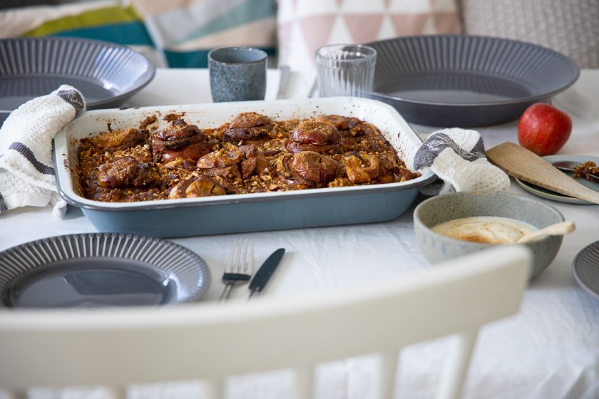 - 30-40 Minuten backen bis der Auflauf gestockt und die Äpfel goldbraun sind.