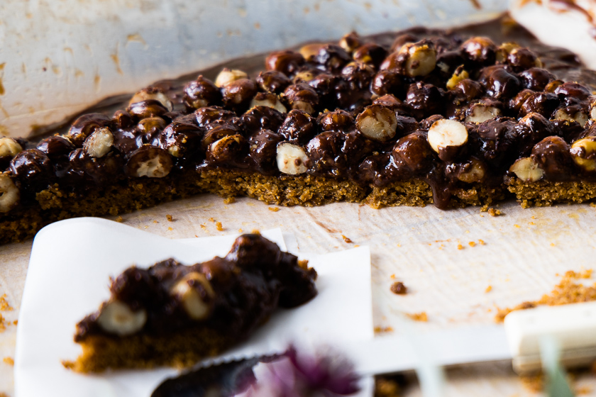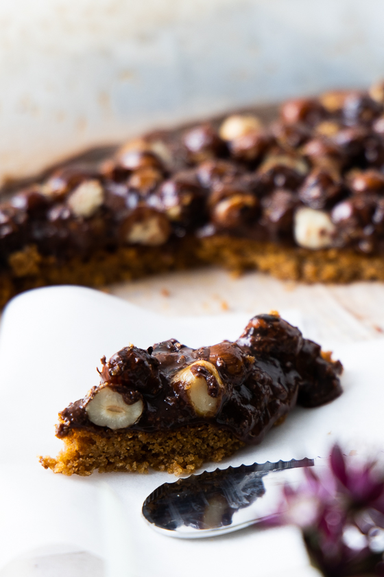 Haselnuss-Kokosblütenkaramell Schnitten mit KORNelia Einkornmehl