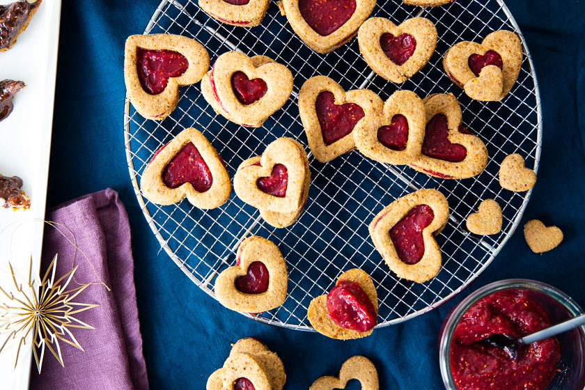 Weihnachtliche Chia-Himbeeren-Herzen mit KORNelia Dinkelmehl