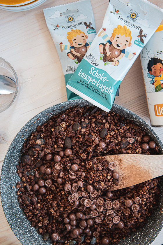 Die 5 ziemlich coolen Rezepte sind wie immer „gesund“, sehen allerdings aufgrund von ein paar Mama Tricks gar nicht so aus – ausnahmsweise werfe ich mal mit Gummibärchen und Schokoknusperkügelchen um mich. Die Dosierung macht den Unterschied zu gekauften Müslis, Müsliriegeln und Früchtekompott – bei denen zu oft Zucker als Inhaltsstoff an erster Stelle steht.