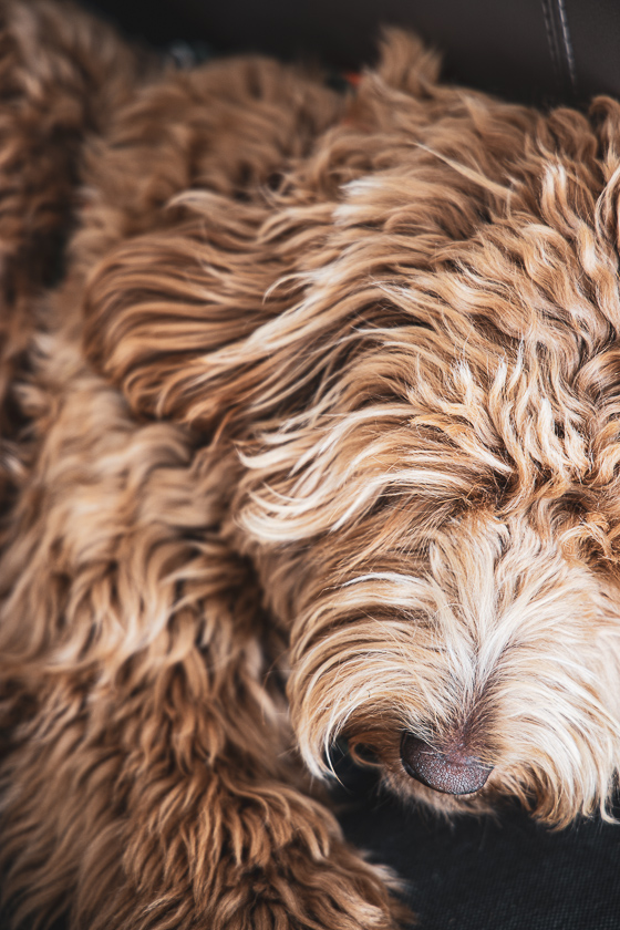 Deutlich mehr! Ja, (Labradoddle-)Welpen verschlafen zu Beginn den halben Tag. Da ist man allerdings damit beschäftigt den Hund vor den Kindern zu beschützen bzw. so etwas wie eine Tages-/Nachtroutine zu etablieren und die Zeichen des Hundes interpretieren zu lernen. Nebst Kindern teilweise ganztägig zu Hause schon eine Herausforderung. Später wollen Hunde körperlich und geistig gefordert werden. Mit zwei Mal am Tag eine 10 minütige Runde draußen zu drehen ist es da bei uns nicht getan. Ausgeglichen ist Lotti, wenn wir einmal am Tag einen ausgiebigen Spaziergang machen, zwischendurch Such-Spiele einbauen und sie immer wieder ausgiebig streicheln und kraulen. Sonst beginnt sie laufend zwischen Haus und Garten ihren Aufenthaltsort zu wechseln, den Teppich oder meine Hausschuhe anzuknabbern oder mir auf den Schoß zu springen – am allerliebsten abends, wenn man selbst endlich ein wenig zur Ruhe kommen will.