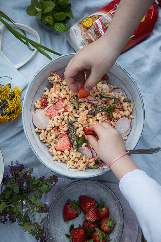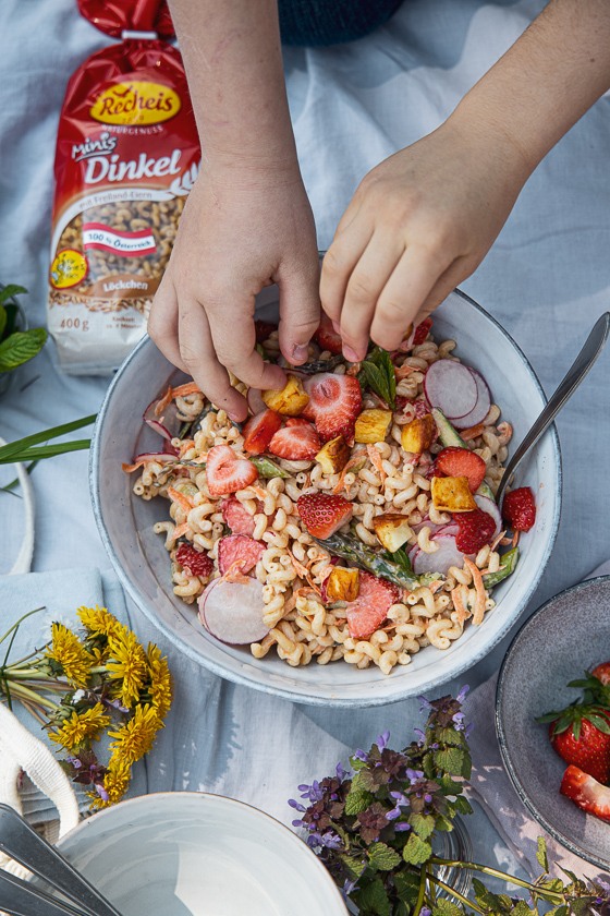 Das Rezept für den Nudelsalat findest du bei Recheis – die uns mit dem Machen der Bilder hier einen richtig feinen Familienmoment beschert haben, ganz unverhofft! Herzlichen Dank! Euch viel Freude beim Ausprobieren und Genießen der Einfachheit.